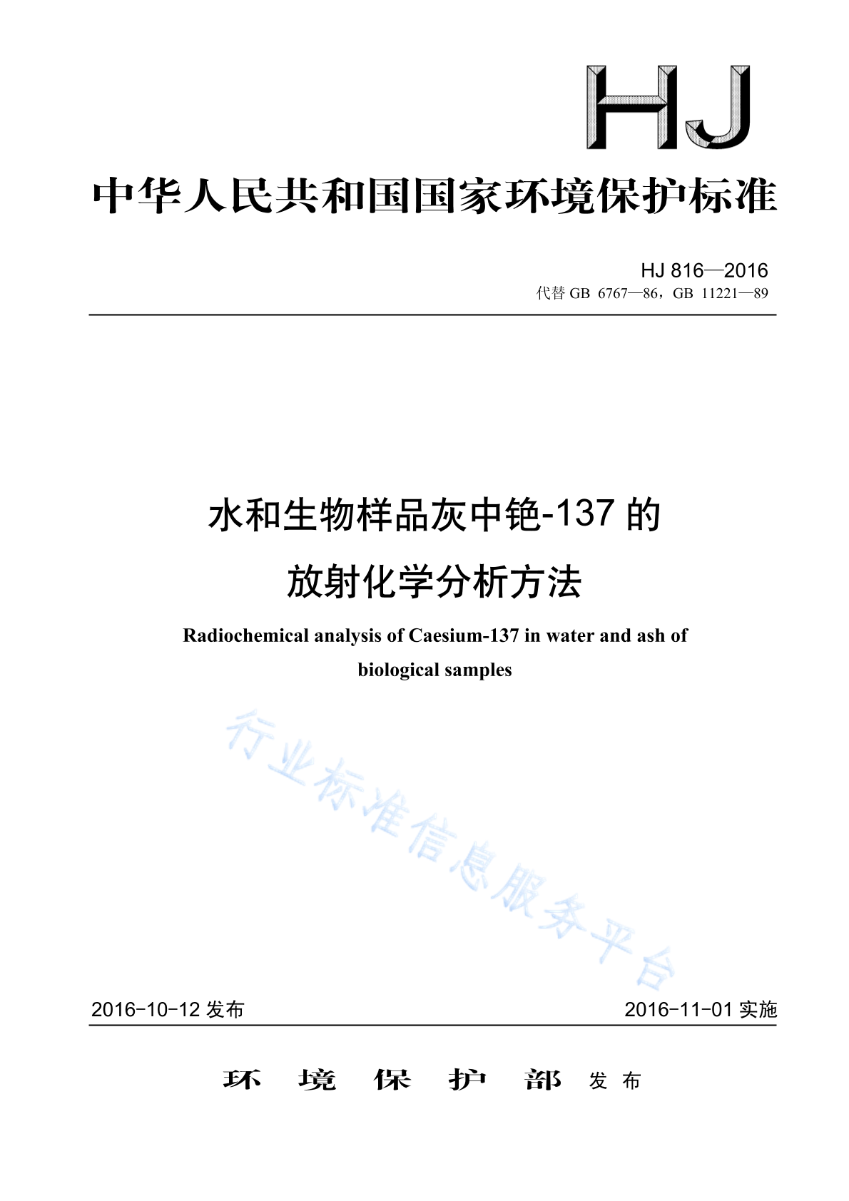 HJ 816-2016 水和生物样品灰中铯-137的放射化学分析方法