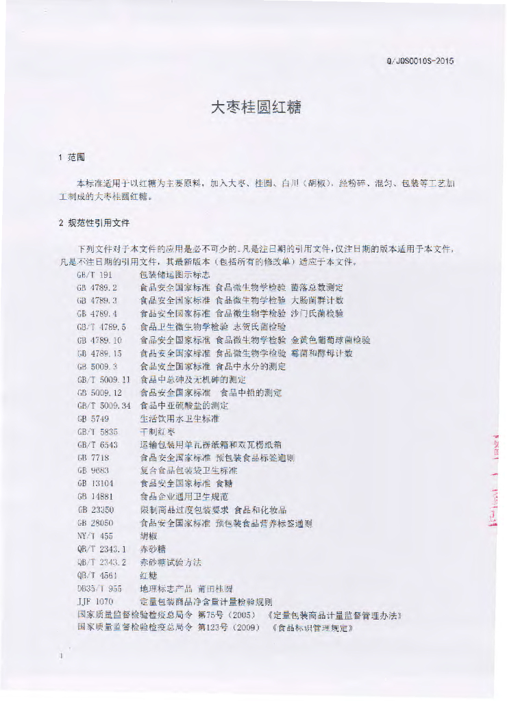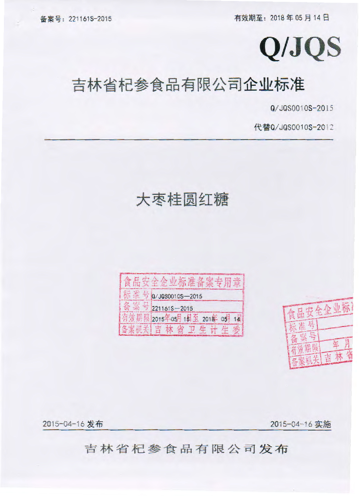 Q/JQS 0010S-2015 吉林省杞参食品有限公司 大枣桂圆红糖