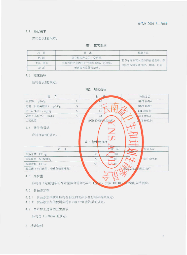 Q/TJX 0001S-2015 腾冲县金鑫食品厂 湿态蜜饯