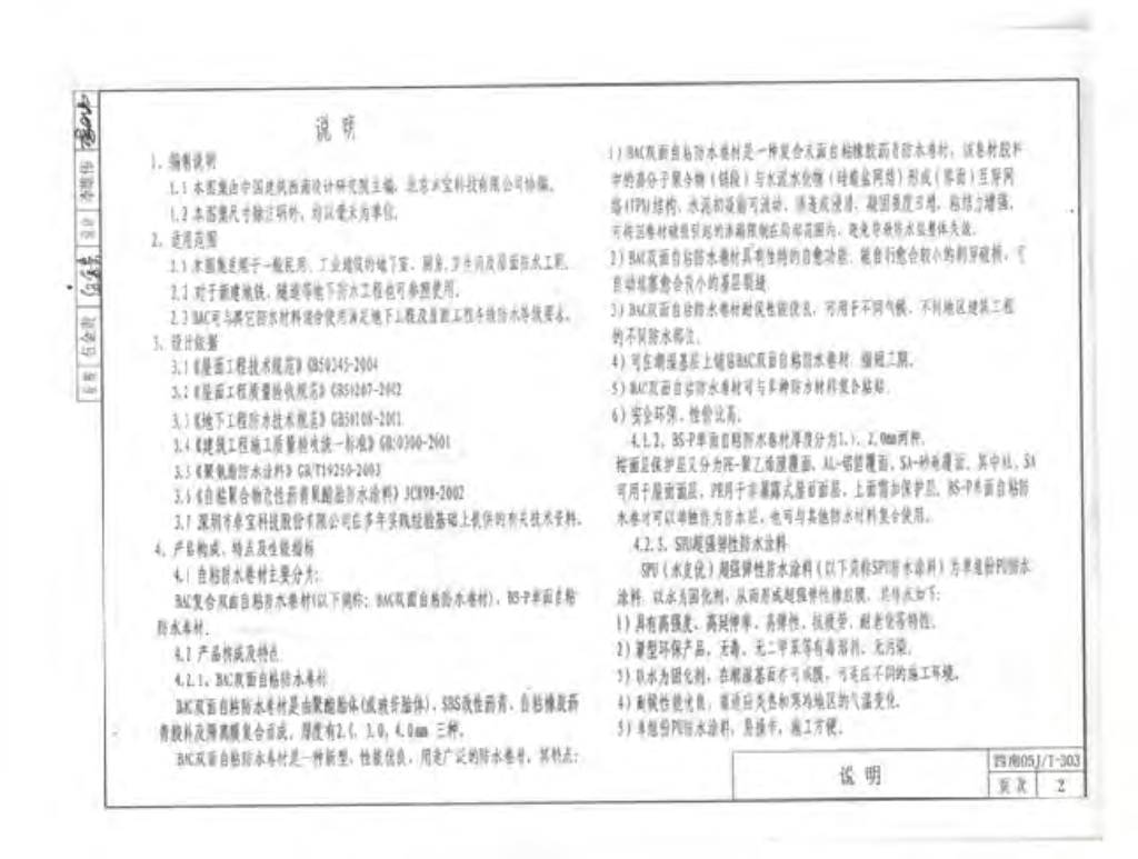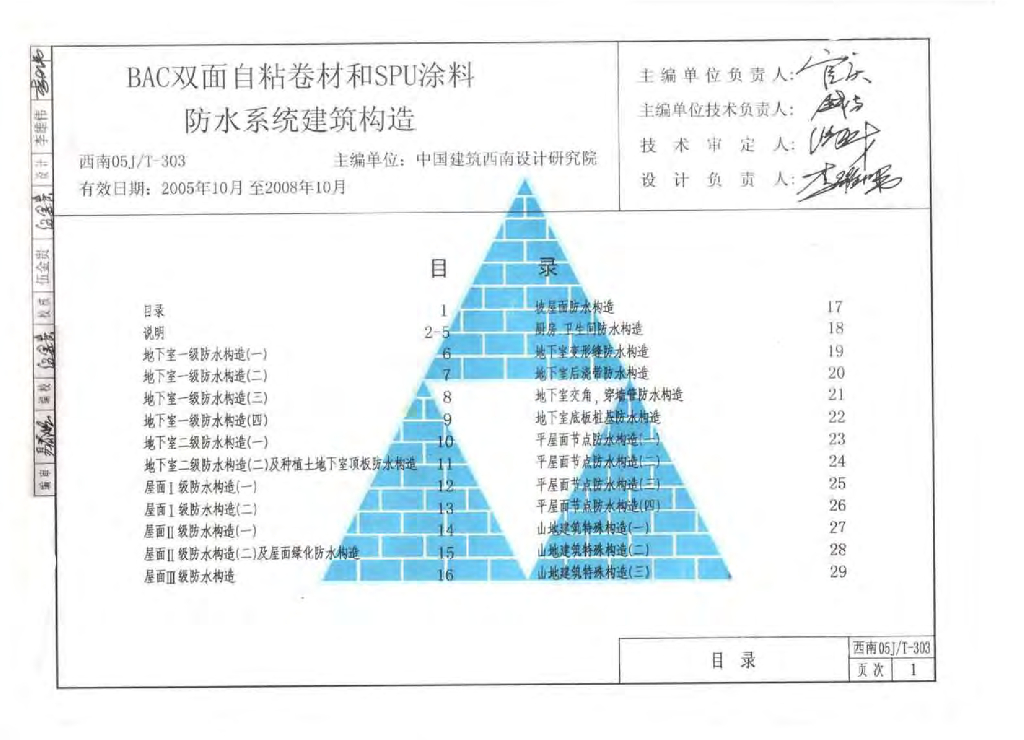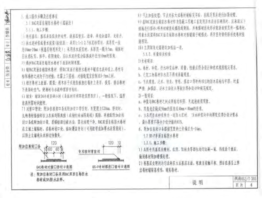 西南05J/T-303 BAC双面自粘卷材和SPU涂料防水系统建筑构造图集