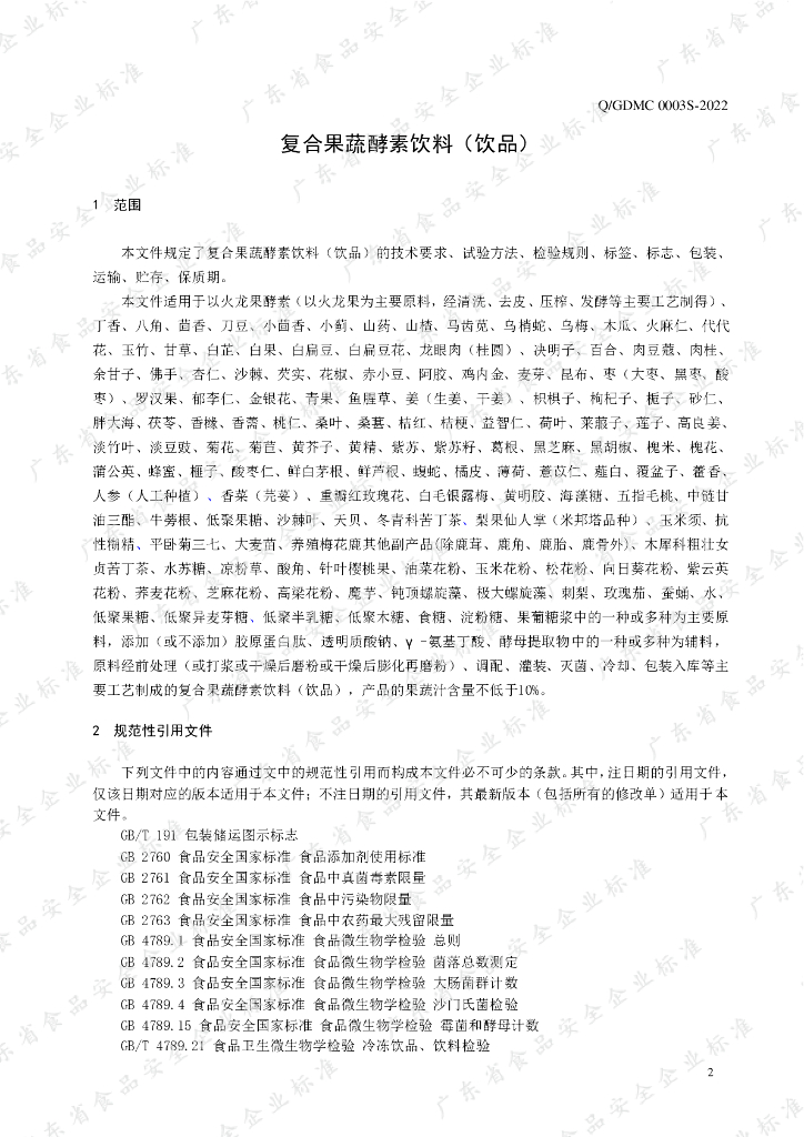 Q/GDMC 0003S-2022 复合果蔬酵素饮料(饮品)