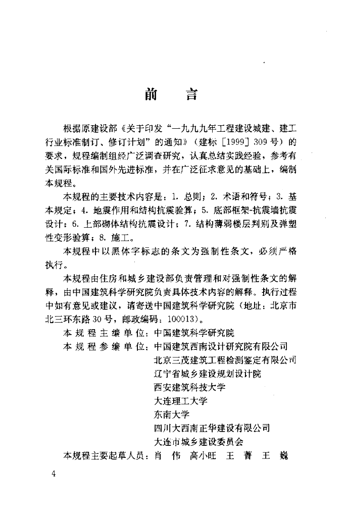中国建筑科学研究院、中国建筑西南设计研究院有限公司、北京三茂建筑工程检测鉴定有限公司、辽宁省城乡建设规划设计院、西安建筑科技大学、东南大学、四川大西南正华建设有限公司、大连市城乡建设委员会
