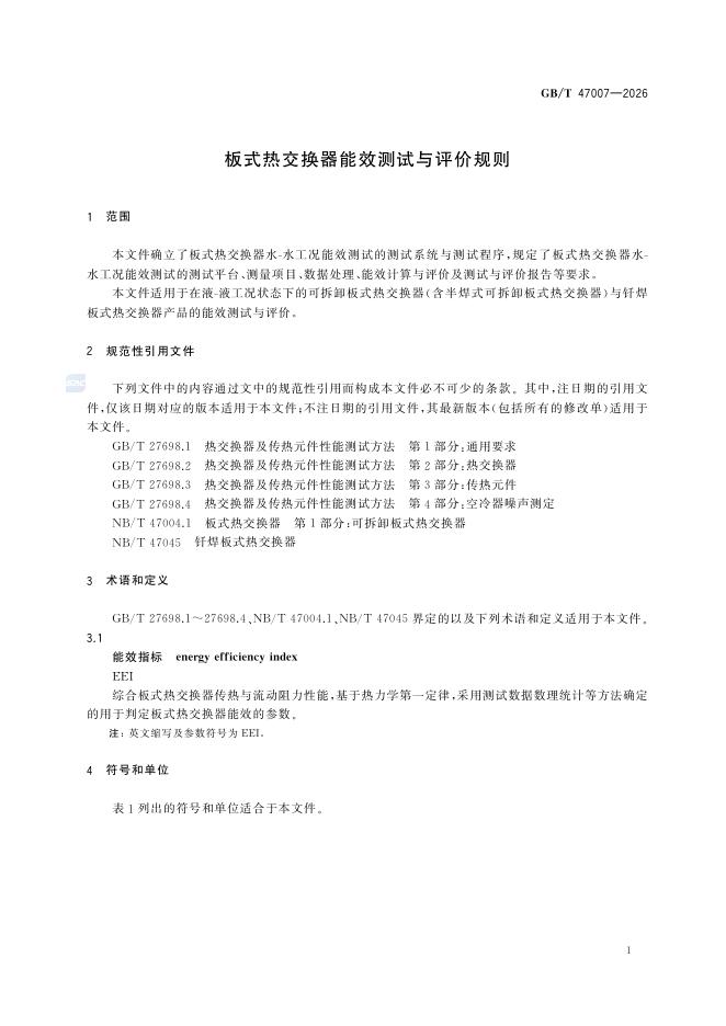 GB/T 47007-2026 板式热交换器能效测试与评价规则