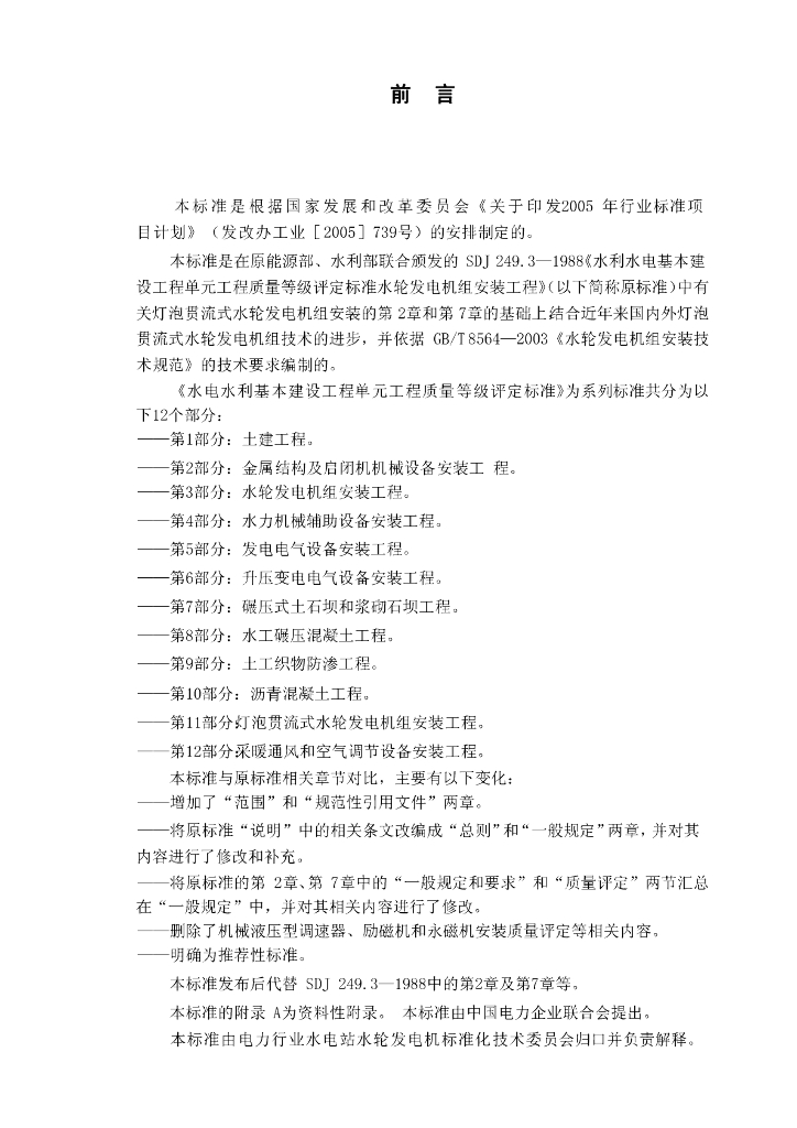 DL/T 5113.11-2005 水电水利基本建设工程 单元工程质量等级评定标准 第11部分:灯泡贯流式水轮发电机组安装工程