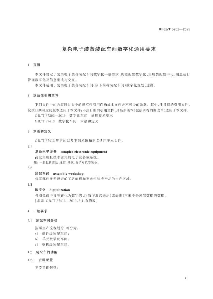 DB32/T 5202-2025 复杂电子装备装配车间数字化通用要求
