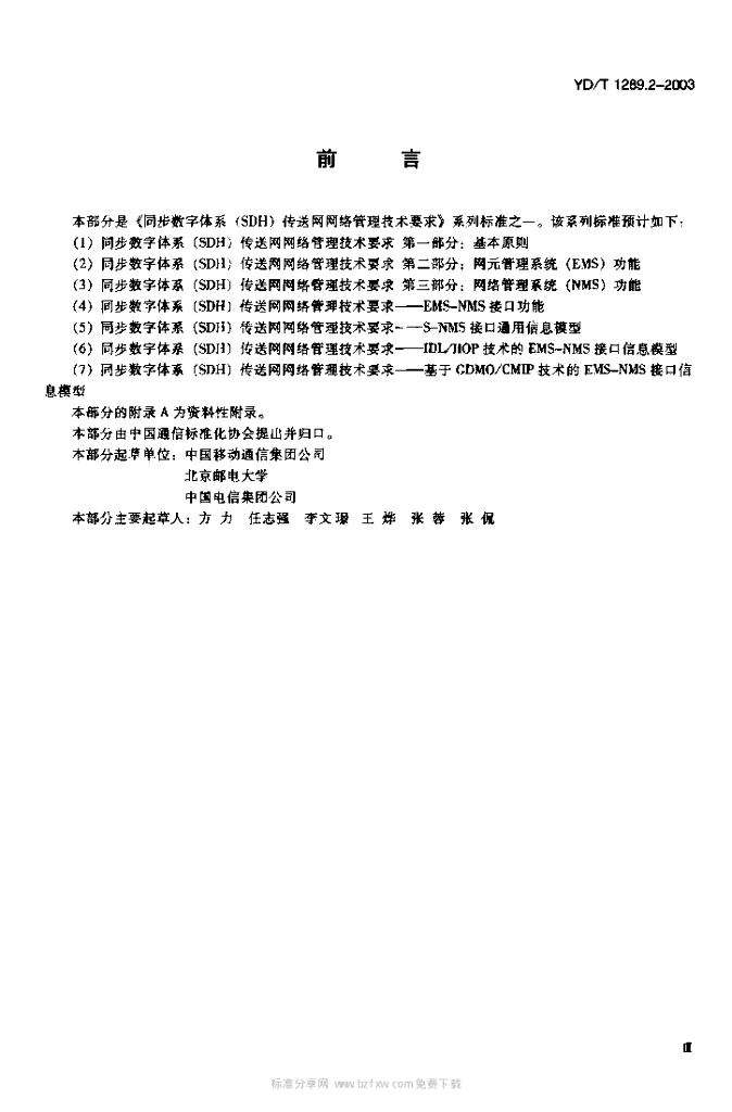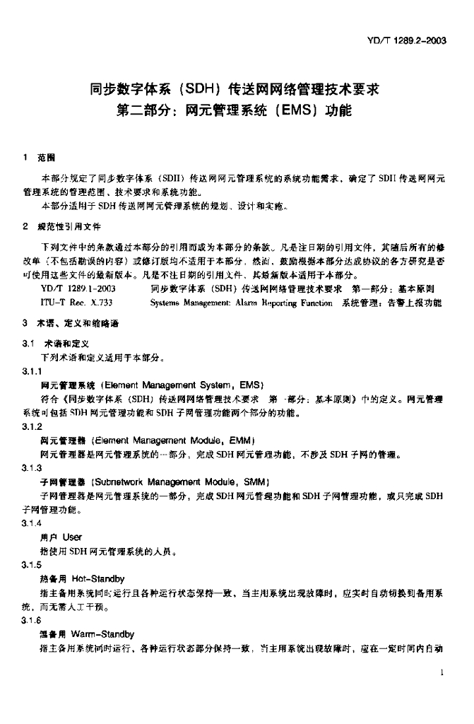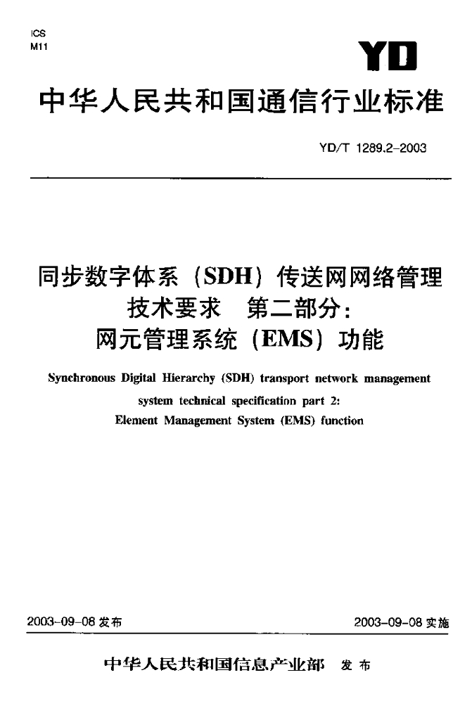 YD/T 1289.2-2003 同步数字体系(SDH)传送网网络管理技术要求 第二部分:网元管理系统(EMS)功能