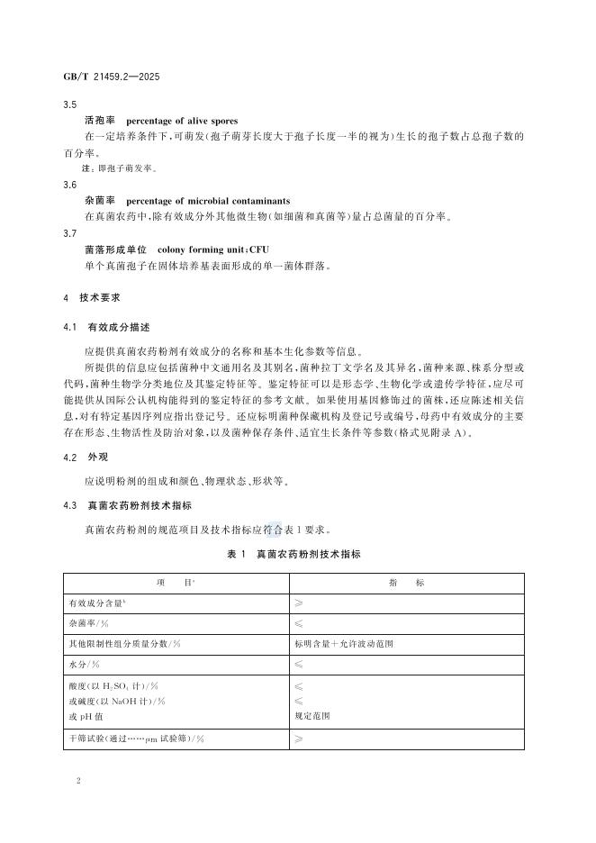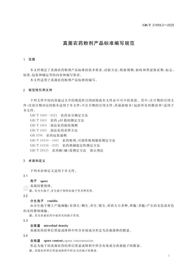 GB/T 21459.2-2025 真菌农药粉剂产品标准编写规范