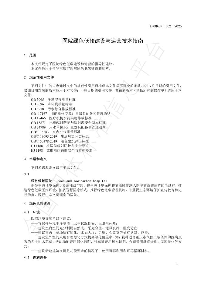 T/CQAEPI 002-2025 医院绿色低碳建设与运营技术指南