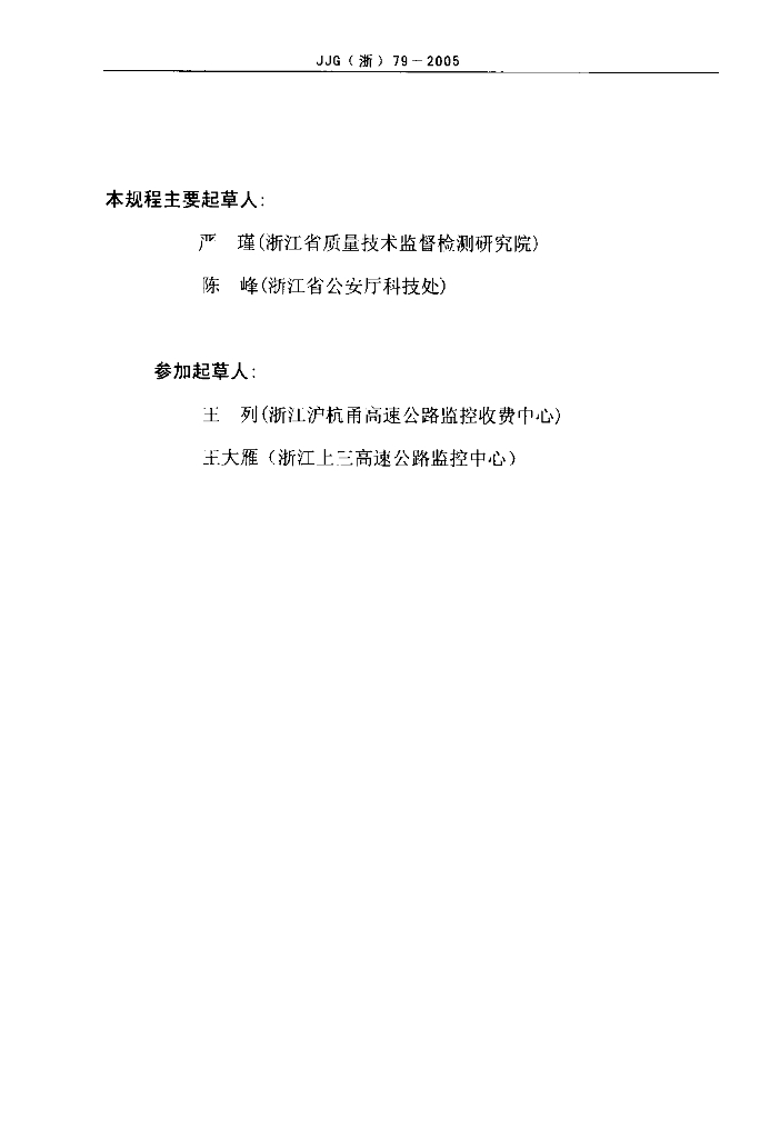 严瑾(浙江省质量技术监督检测研究院)、陈峰(浙江省 公安厅科技处)、王列(浙江沪杭甬高速公路监控收费中心)、王大雁(浙江上三高速公路监控中心)