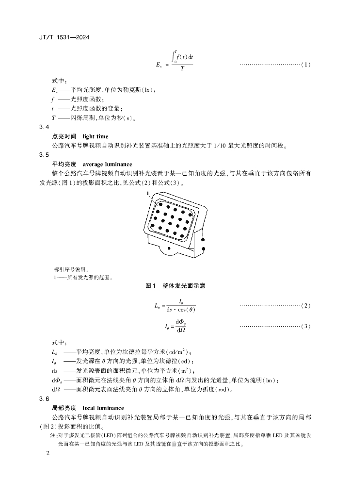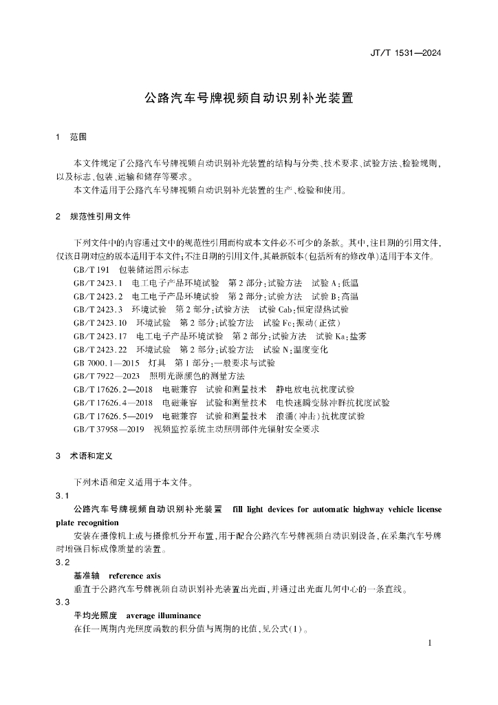 JT/T 1531-2024 公路汽车号牌视频自动识别补光装置