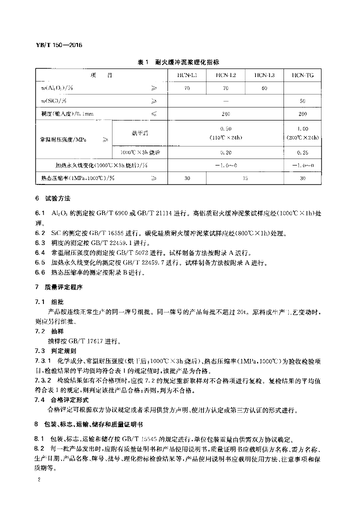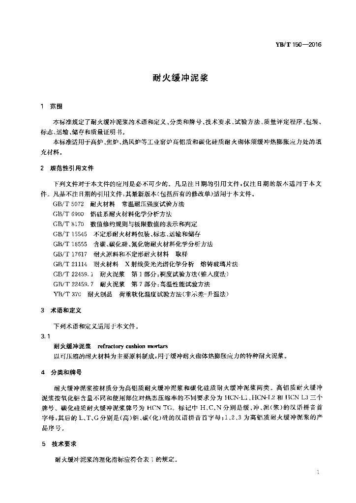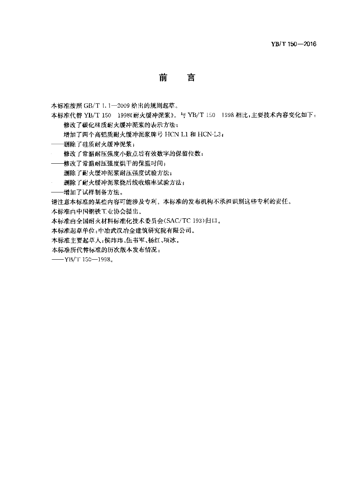 YB/T 150-2016 耐火缓冲泥浆