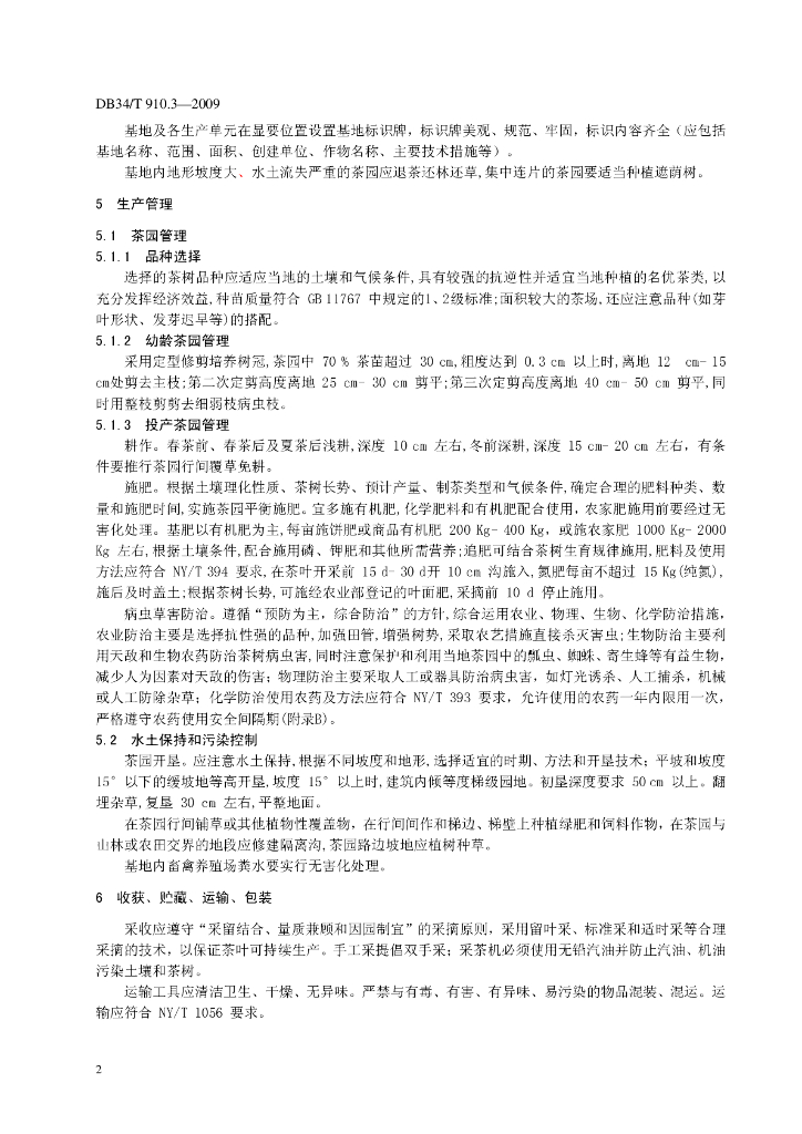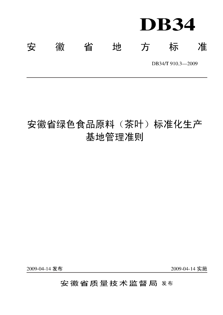 DB34/T 910.3-2009 安徽省绿色食品原料(茶叶)标准化生产基地管理准则