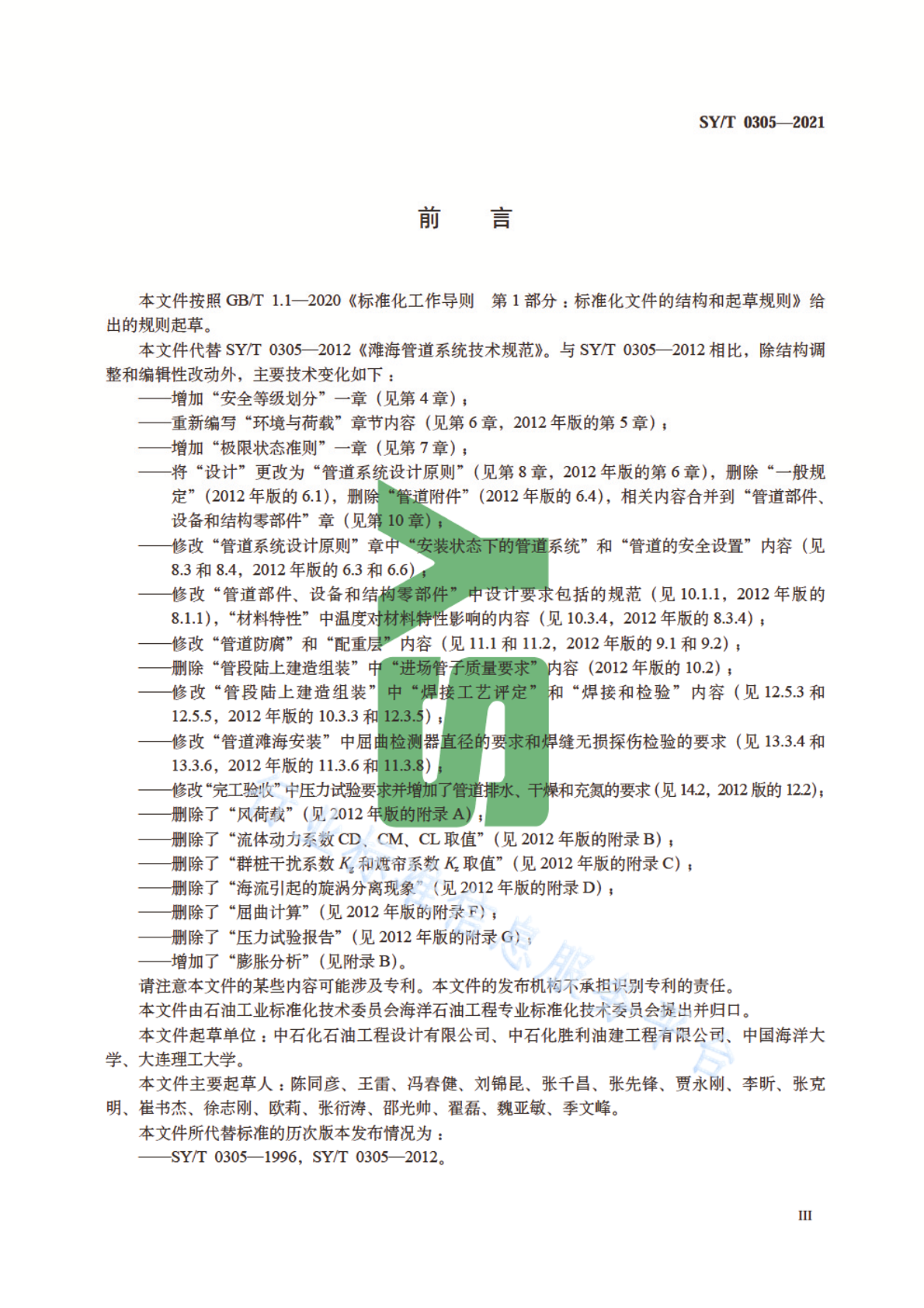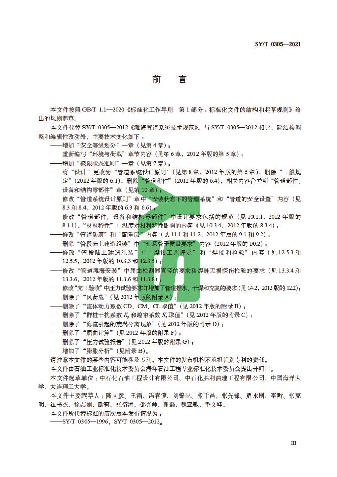 - 提出单位:石油工业标准化技术委员会海洋石油工程专业标准化技术委员会
