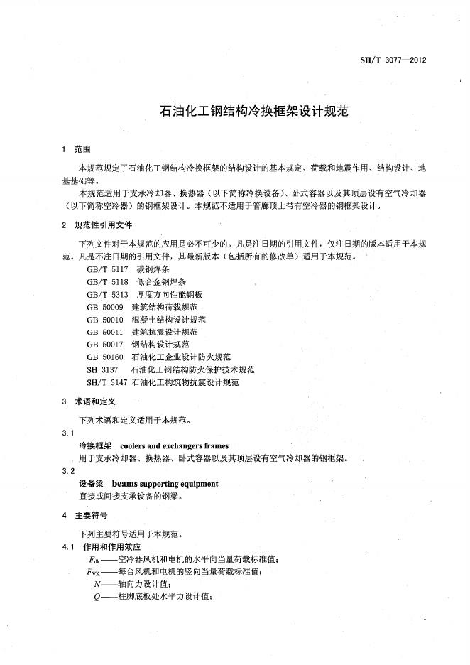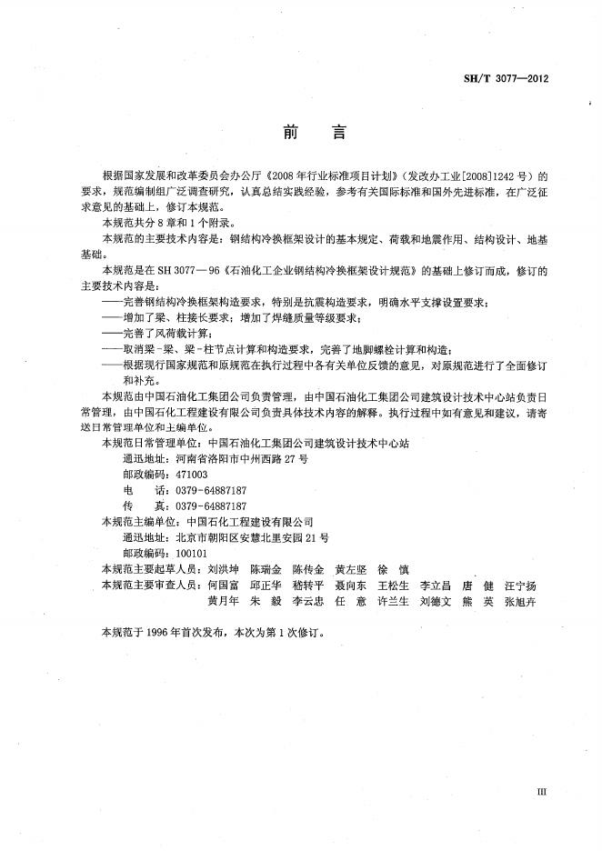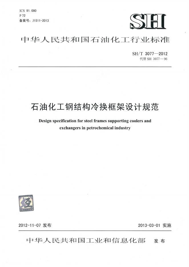 SH/T 3077-2012 石油化工钢结构冷换框架设计规范