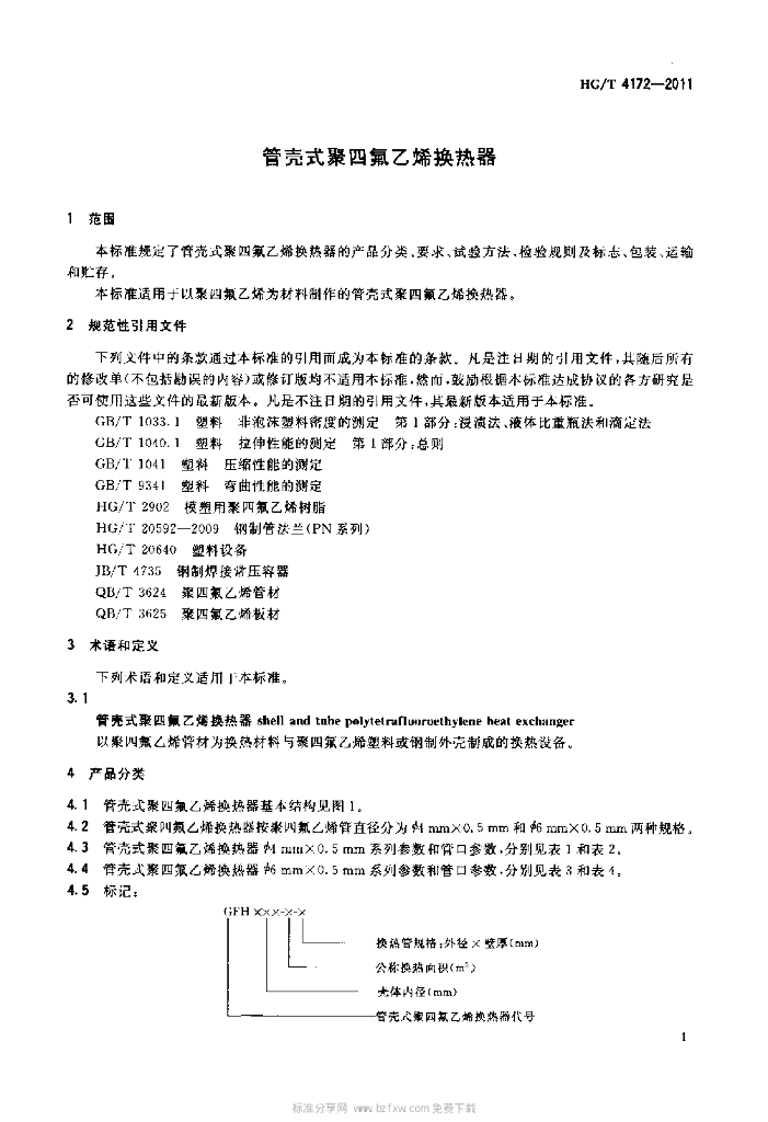 HG/T 4172-2011 管壳式聚四氟乙烯换热器
