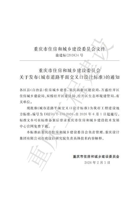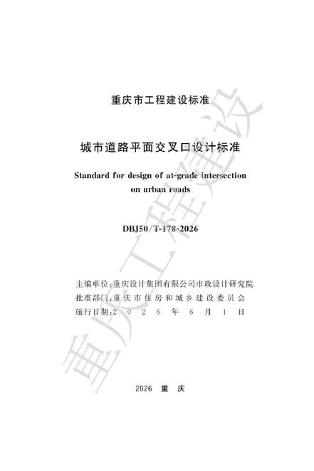 DBJ50/T 178-2026 城市道路平面交叉口设计标准