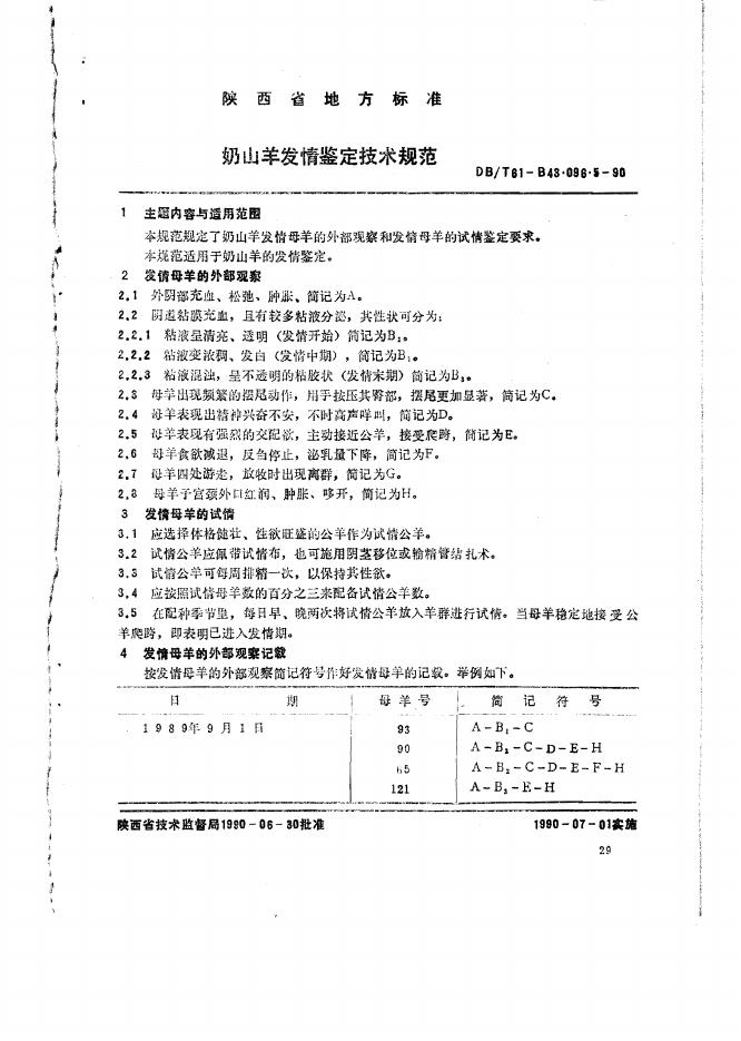 DB61/T B43.096.5-1990 奶山羊发情鉴定技术规范