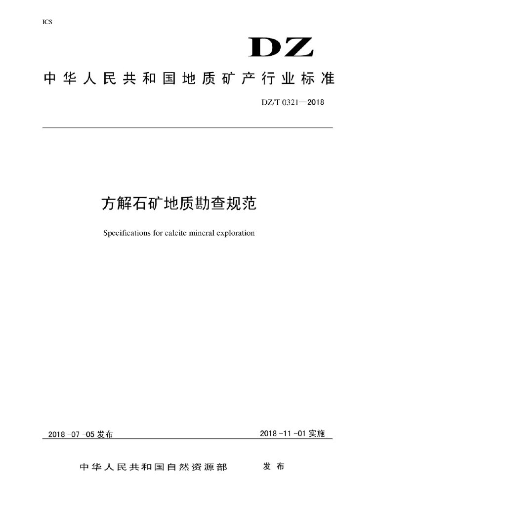 DZ/T 0321-2018 方解石矿地质勘查规范