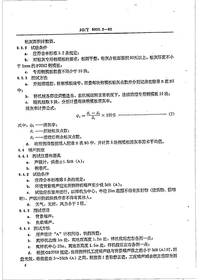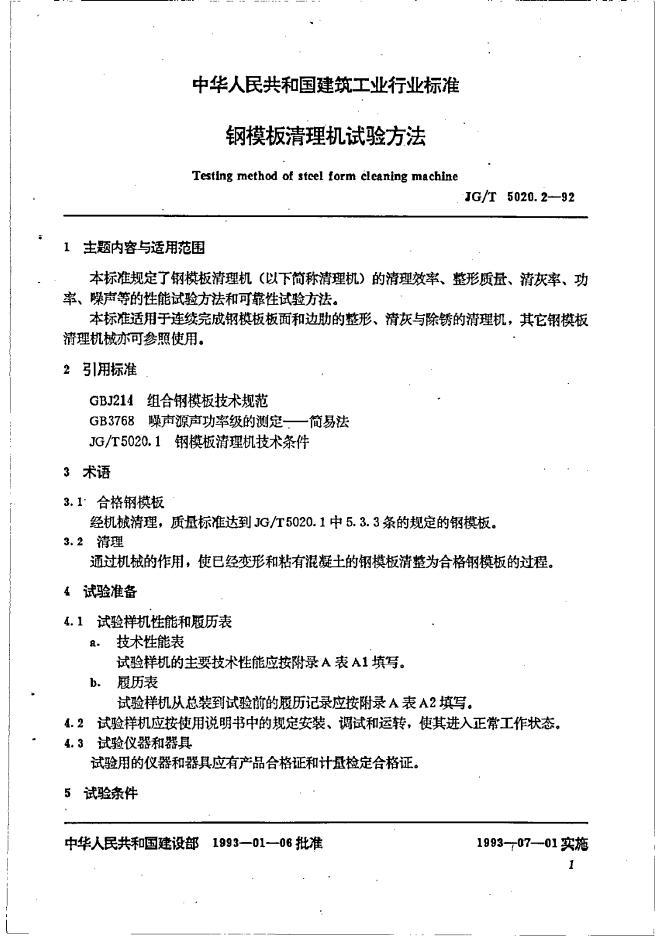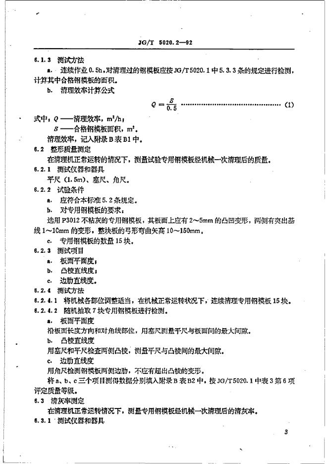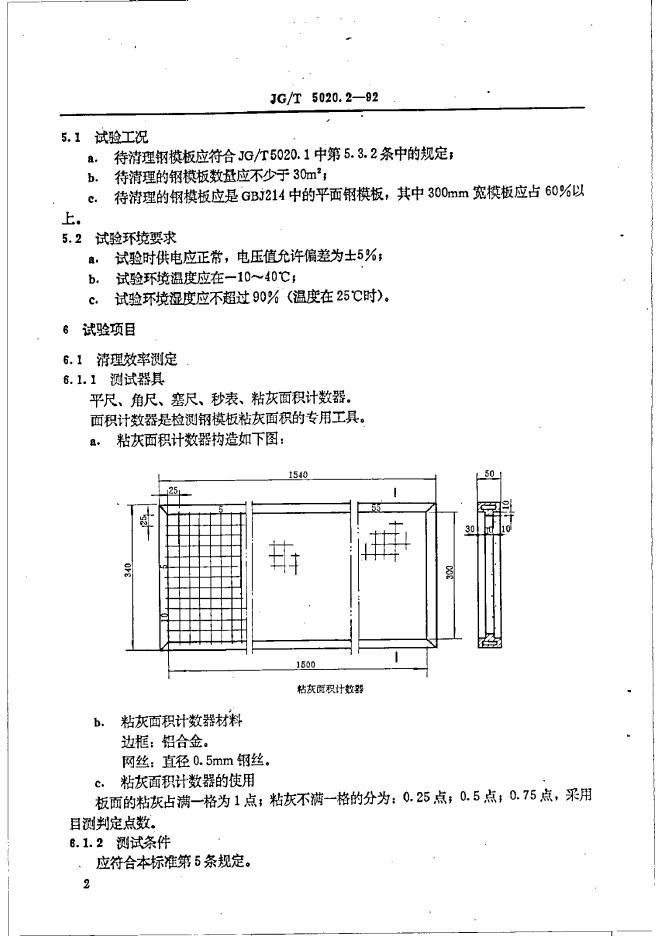 JG/T 5020.2-1992 钢模板清理机 试验方法