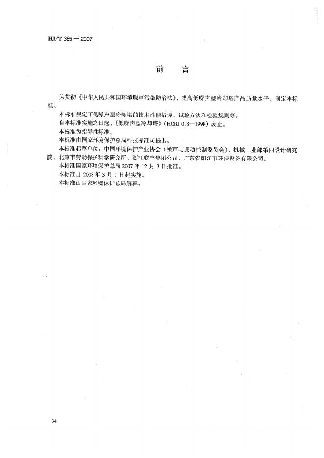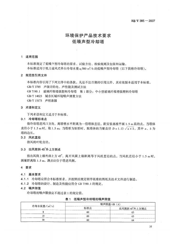 HJ/T 385-2007 环境保护产品技术要求 低噪声型冷却塔