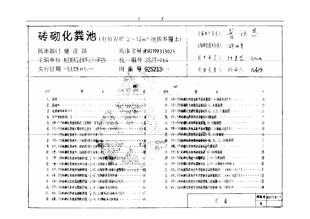 92S213(一) 砖砌化粪池(有效容积2~12m³池顶不覆土)图集
