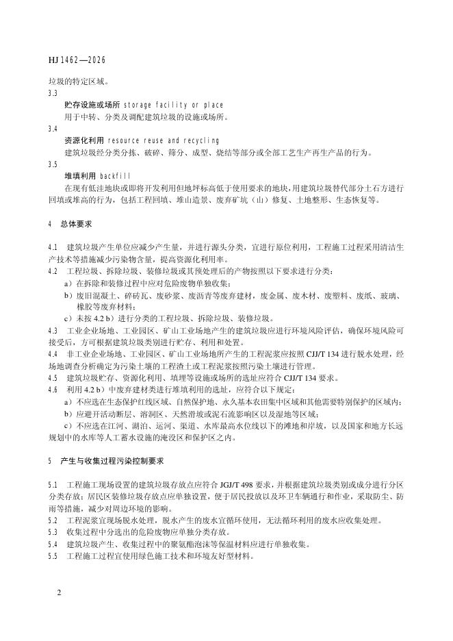 HJ 1462-2026 建筑垃圾污染控制技术规范