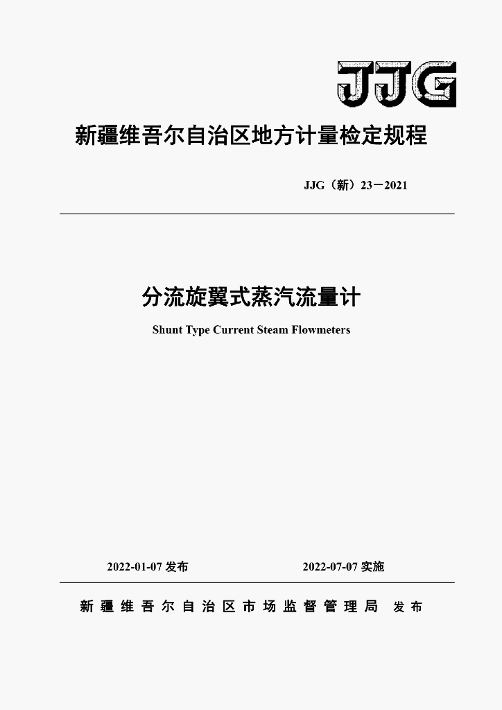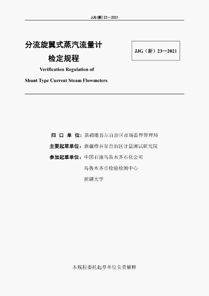 JJG(新)23-2021 分流旋翼式蒸汽流量计检定规程