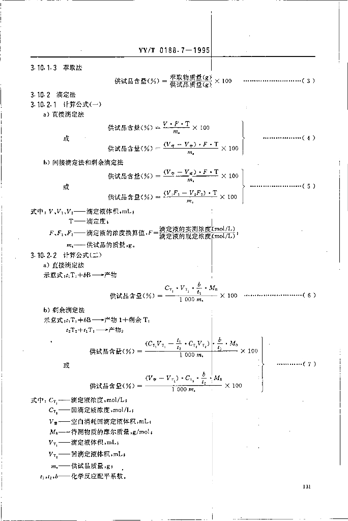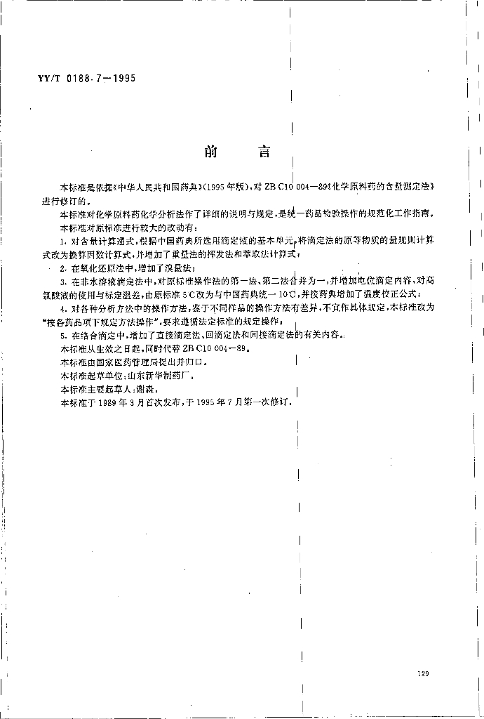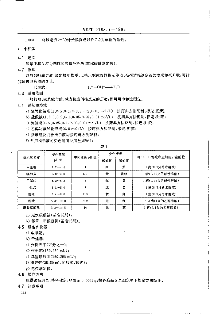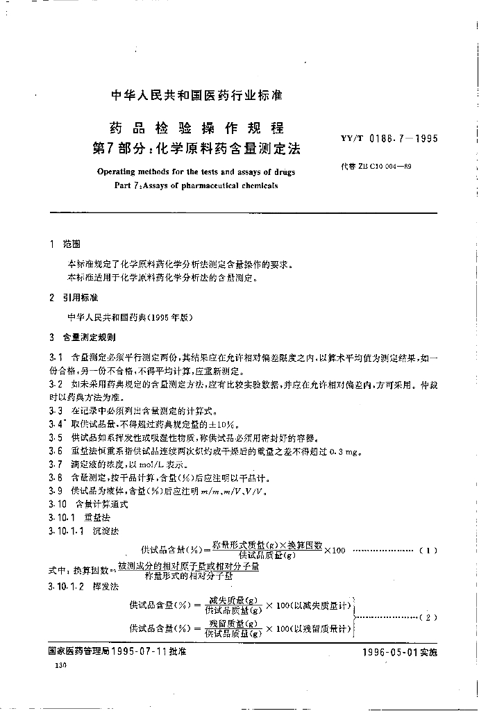 YY/T 0188.7-1995 药品检验操作规程 第7部分-化学原料含量测定法