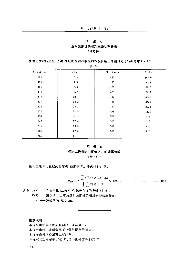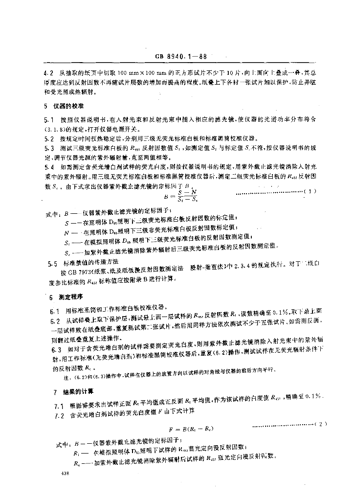 GB/T 8940.1-1988 纸和纸板白度测定法 45/0定向反射法
