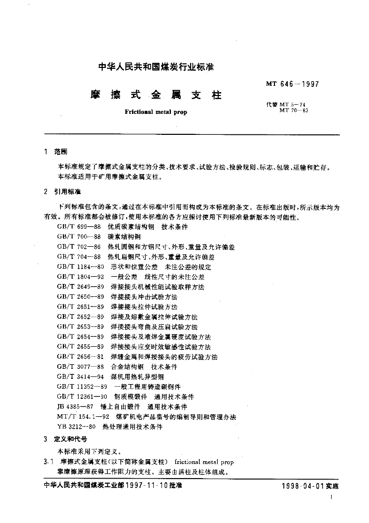 MT 646-1997 摩擦式金属支柱