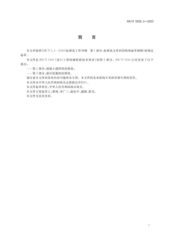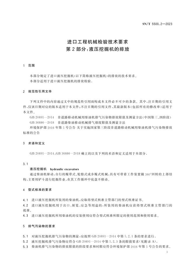 SN/T 5500.2-2023 进口工程机械检验技术要求 第2部分:液压挖掘机的排放