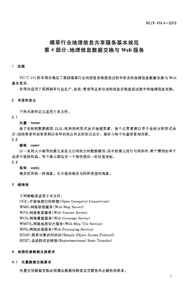 YC/T 474.4-2013 烟草行业地理信息共享服务基本规范 第4部分:地理信息数据交换与Web服务