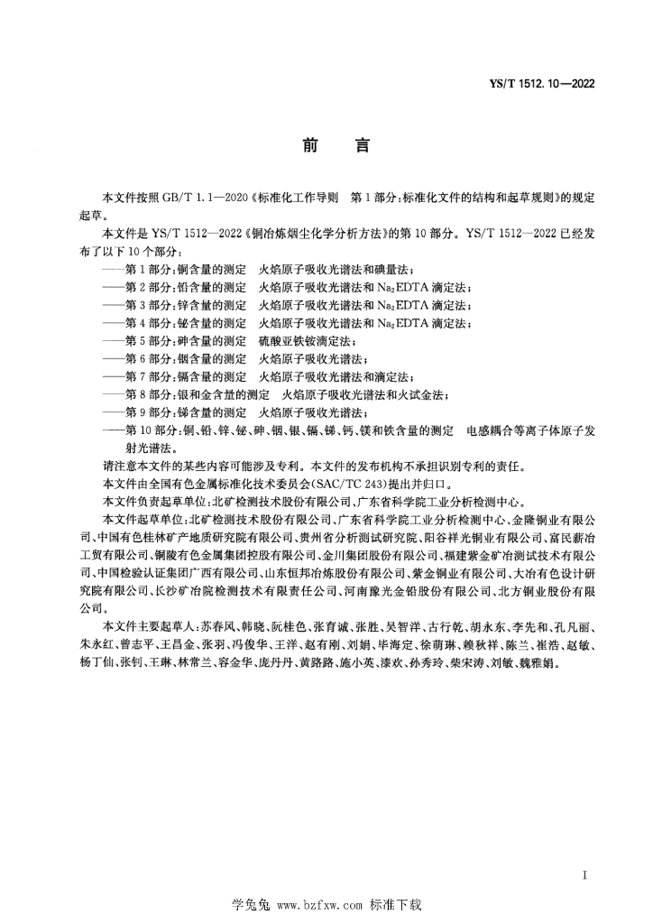 北矿检测技术股份有限公司、广东省科学院工业分析检测中心、北矿检测技术股份有限公司、广东省科学院工业分析检测中心、金隆铜业有限公司、中国有色桂林矿产地质研究院有限公司、贵州省分析测试研究院、阳谷祥光铜业有限公司、富民薪冶工贸有限公司、铜陵有色金属集团控股有限公司、金川集团股份有限公司、福建紫金矿冶测试技术有限公司、中国检验认证集团广西有限公司、山东恒邦冶炼股份有限公司、紫金铜业有限公司、大冶有色设计研究院有限公司、长沙矿冶院检测技术有限责任公司、河南豫光金铅股份有限公司、北方铜业股份有限公司