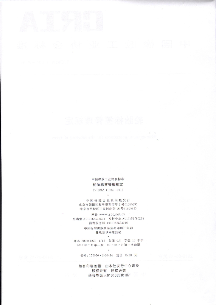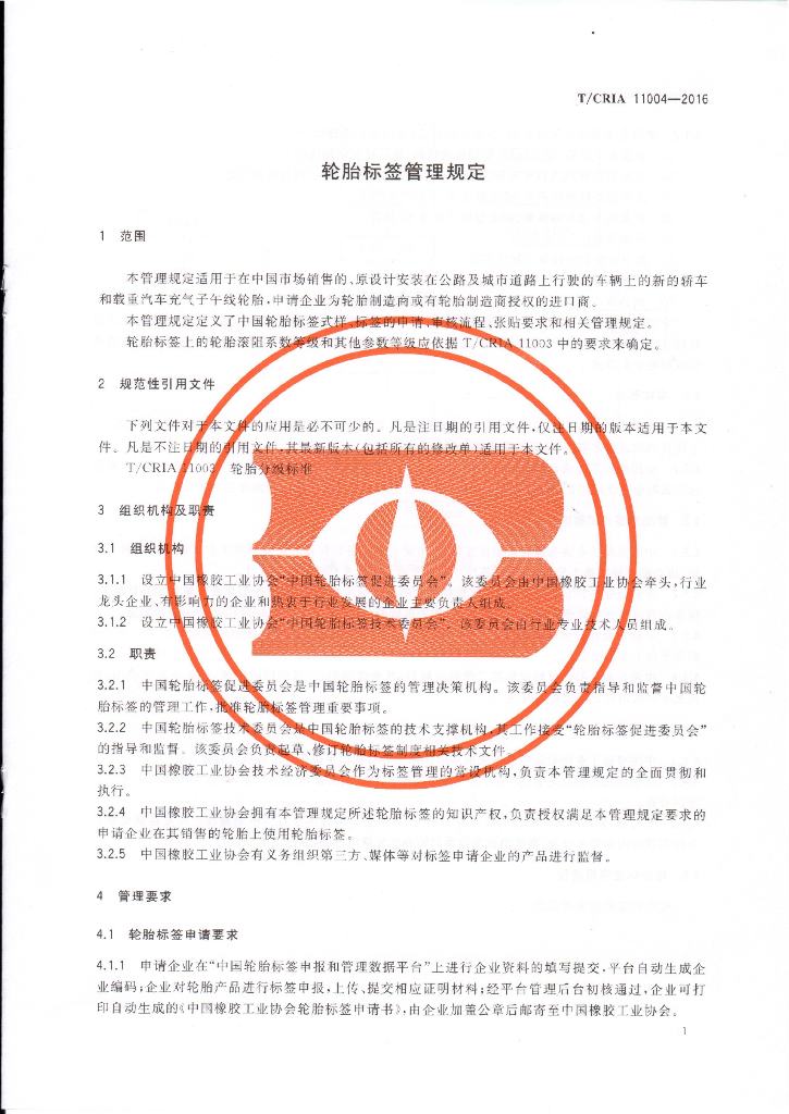 T/CRIA 11004-2016 轮胎标签管理规定