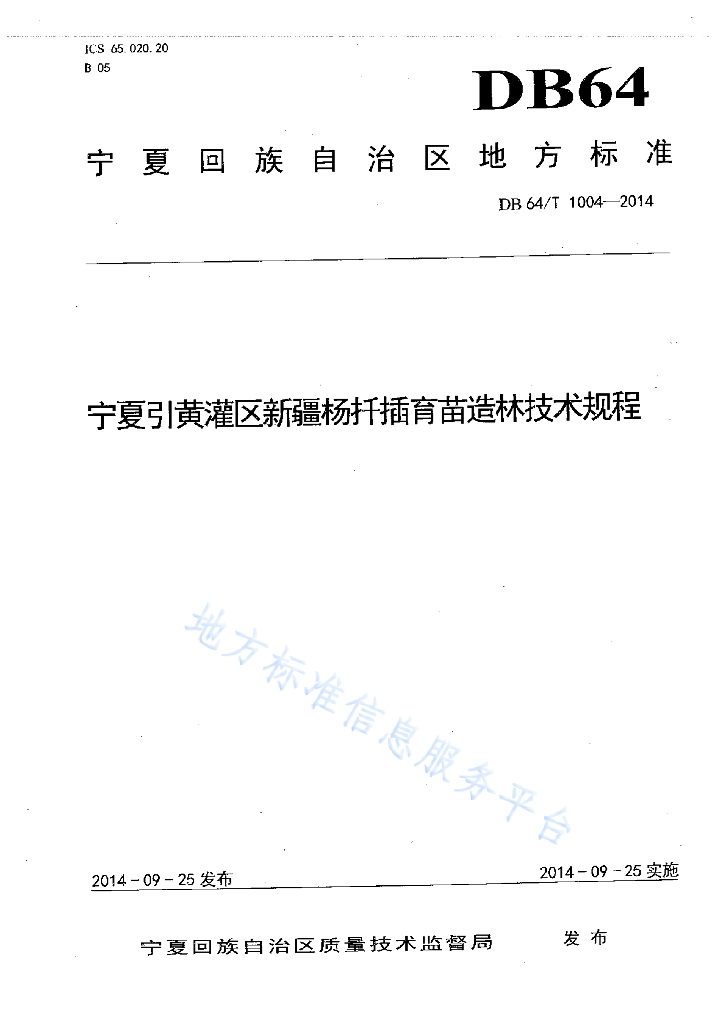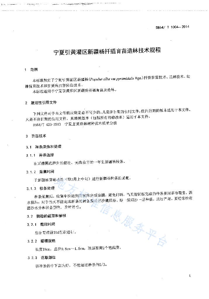 DB64/T 1004-2014 宁夏引黄灌区新疆杨扦插育苗造林技术规程