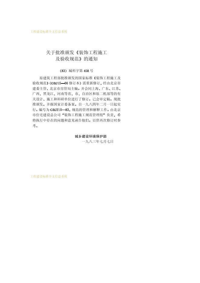 GBJ 210-1983 装饰工程施工及验收规范