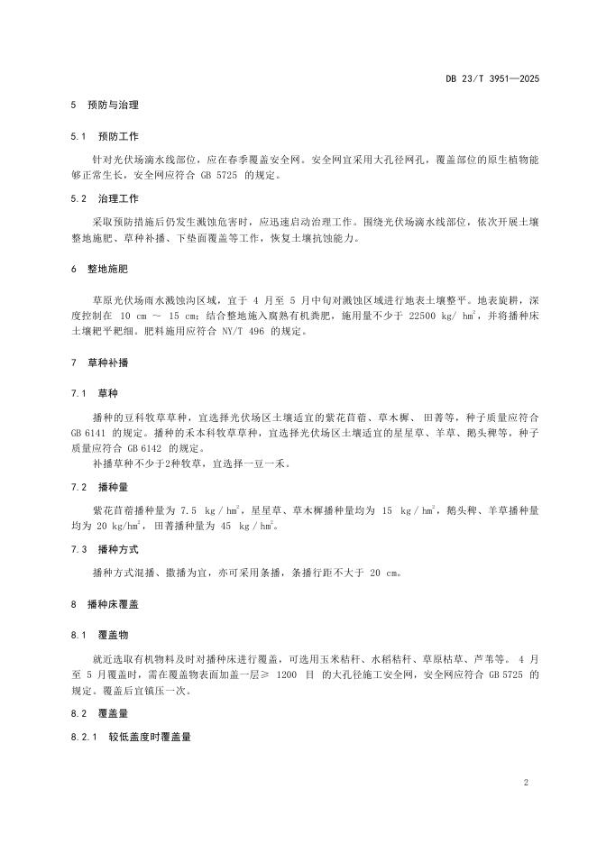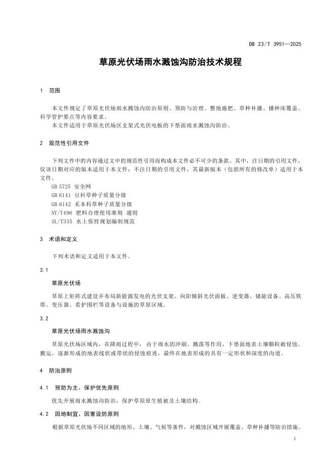 DB23/T 3951-2025 草原光伏场雨水溅蚀沟防治技术规程