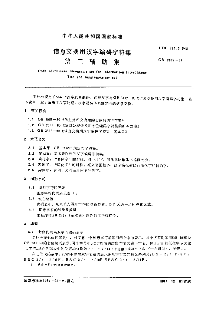 GB/T 7589-1987 信息交换用汉字编码字符集 第二辅助集