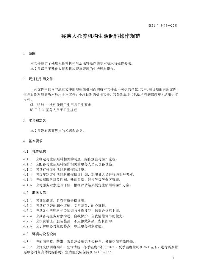 DB11/T 2472-2025 残疾人托养机构生活照料操作规范