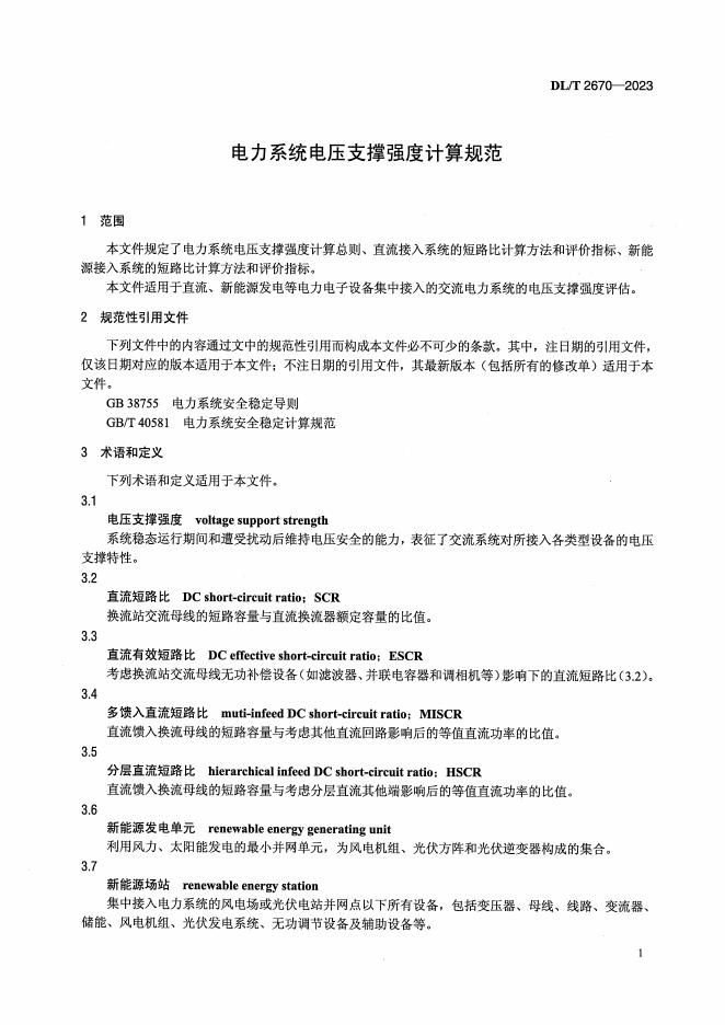 DL/T 2670-2023 电力系统电压支撑强度计算规范