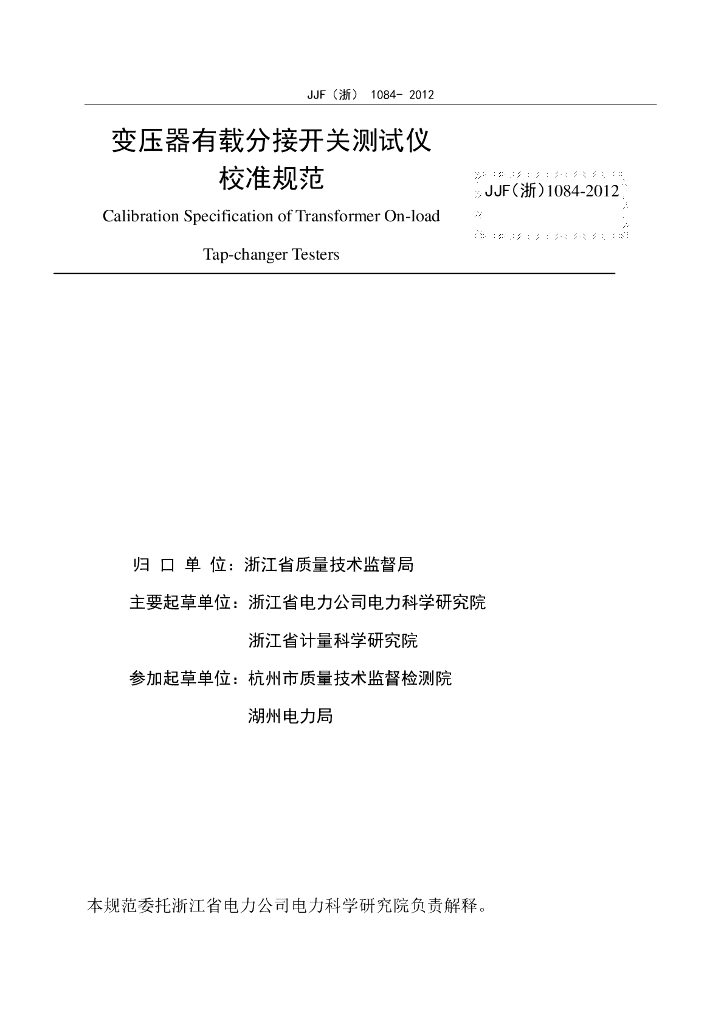 JJF(浙)1084-2012 变压器有载分接开关测试仪校准规范