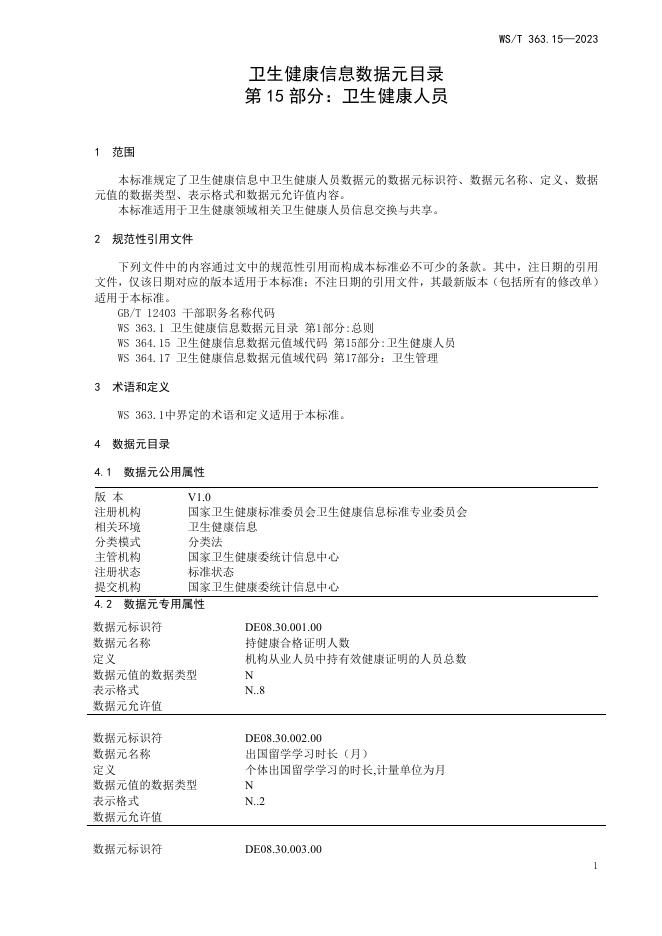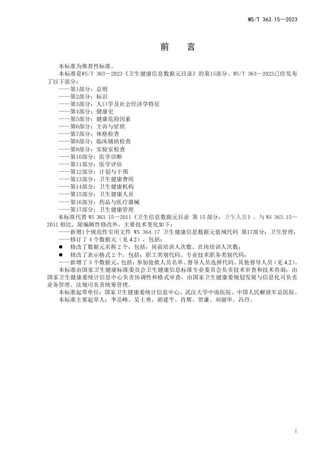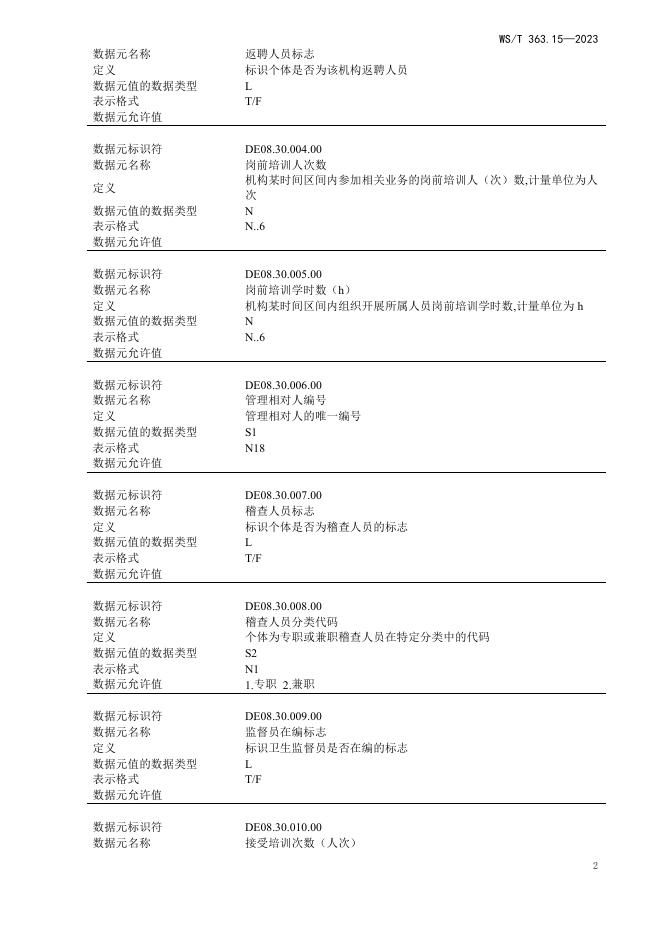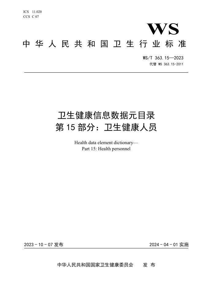 WS/T 363.15-2023 卫生健康信息数据元目录 第15部分:卫生健康人员