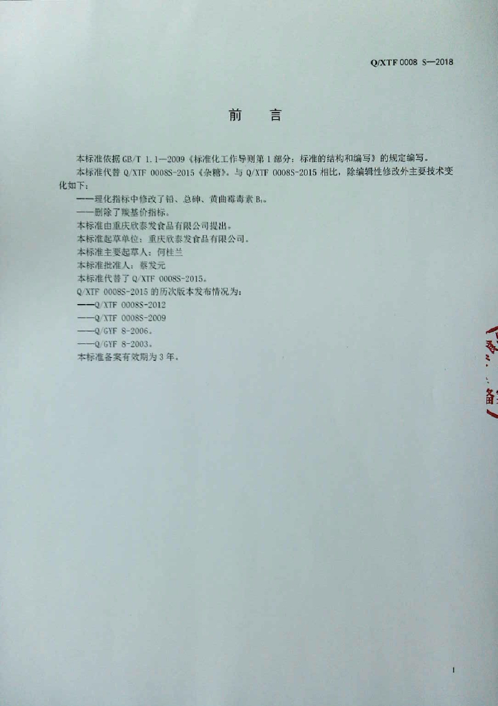 Q/XTF 0008S-2018 杂糖