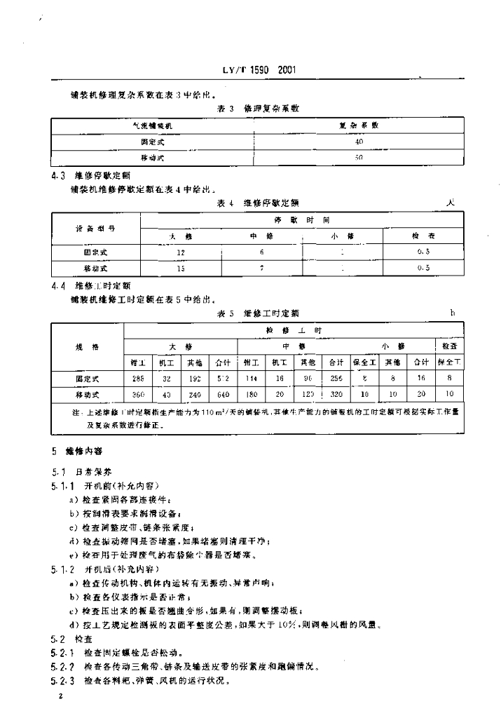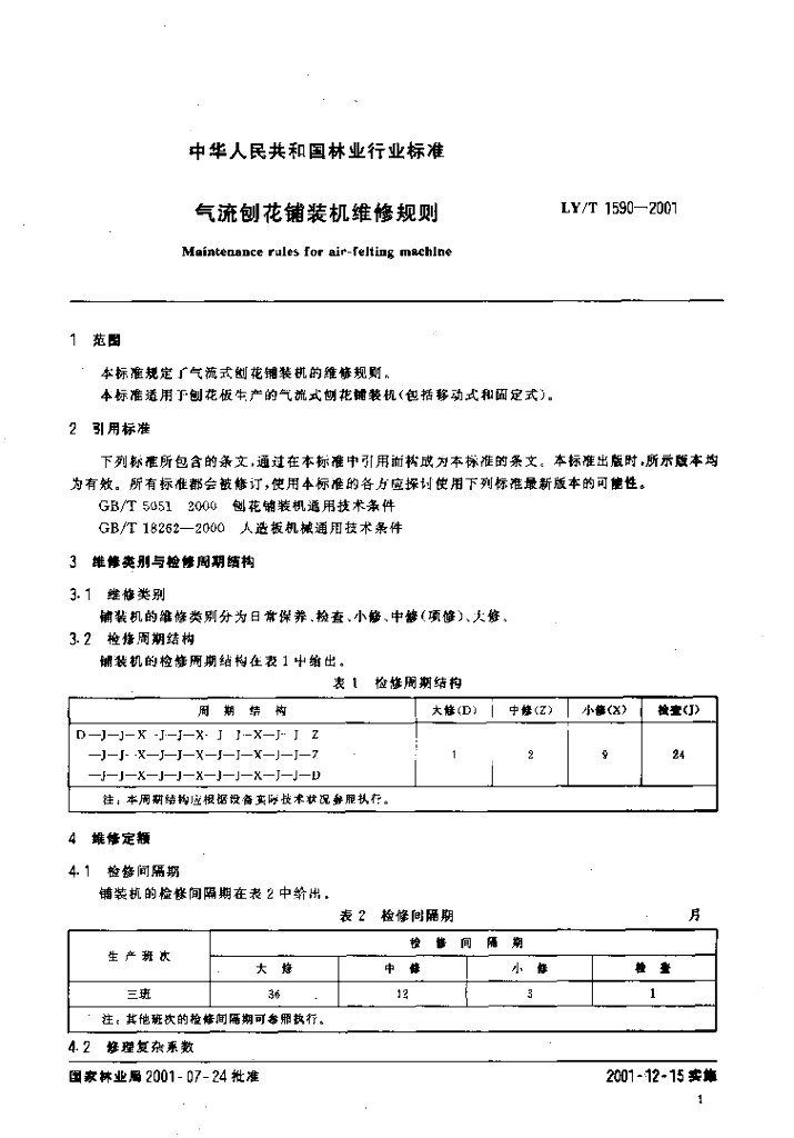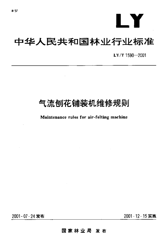 LY/T 1590-2001 气流刨花铺装机维修规则