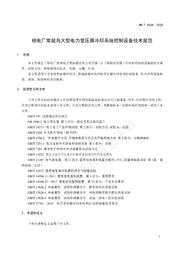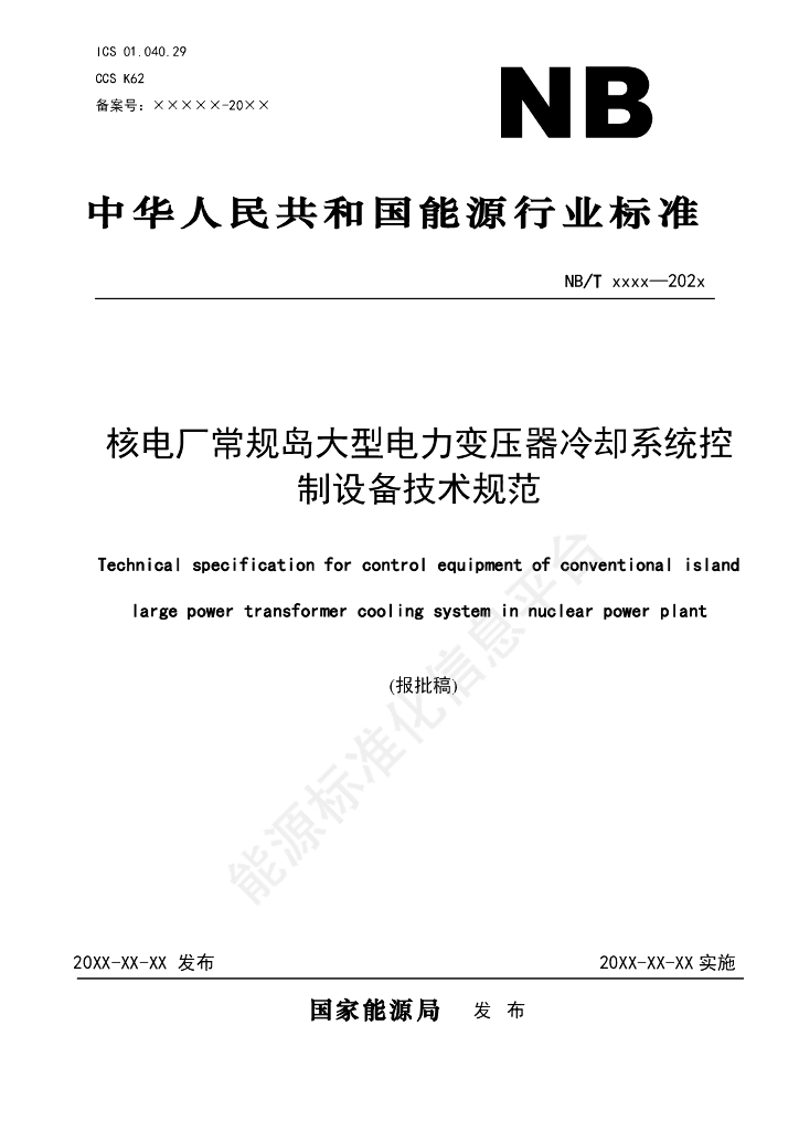 NB/T 11582-2024 核电厂常规岛大型电力变压器冷却系统控制设备技术规范