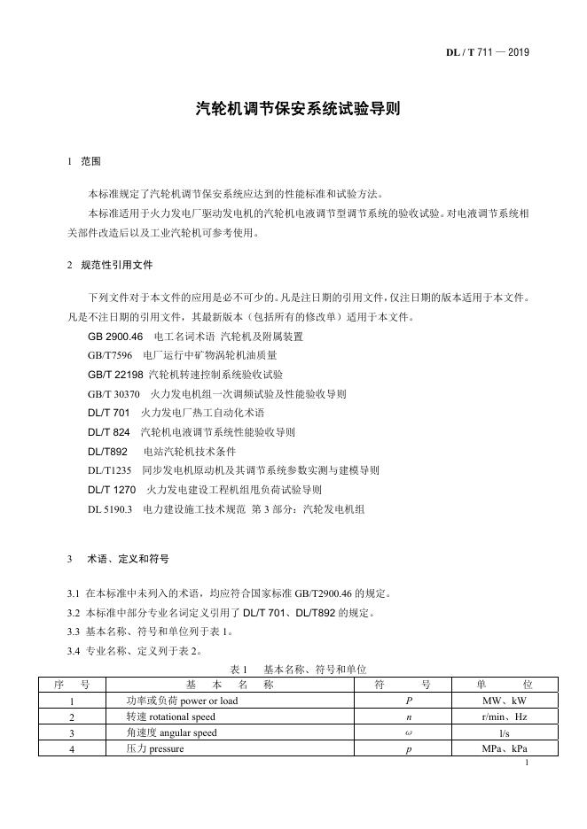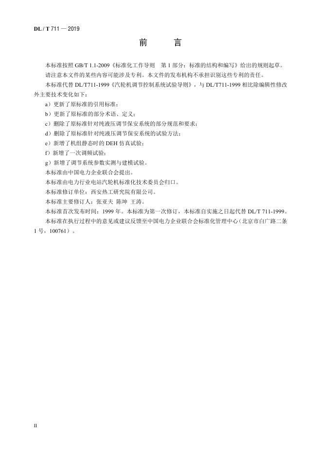 DL/T 711-2019 汽轮机调节保安系统试验导则