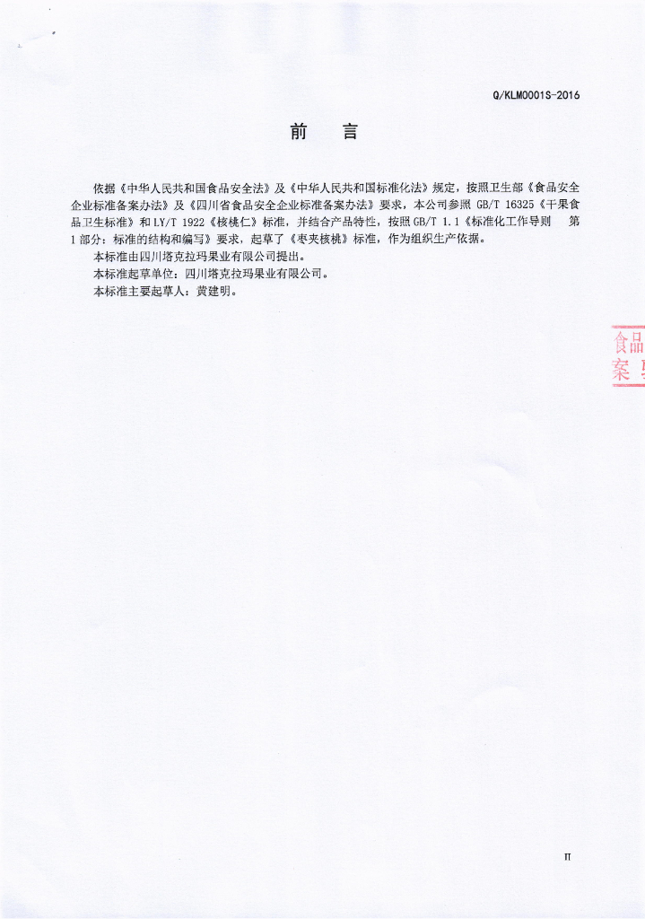 Q/KLM 0001S-2016 四川塔克拉玛果业有限公司 枣夹核桃