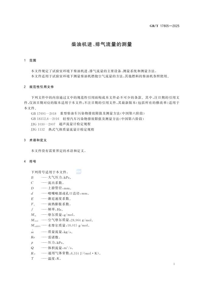 GB/T 17805-2025 柴油机进、排气流量的测量