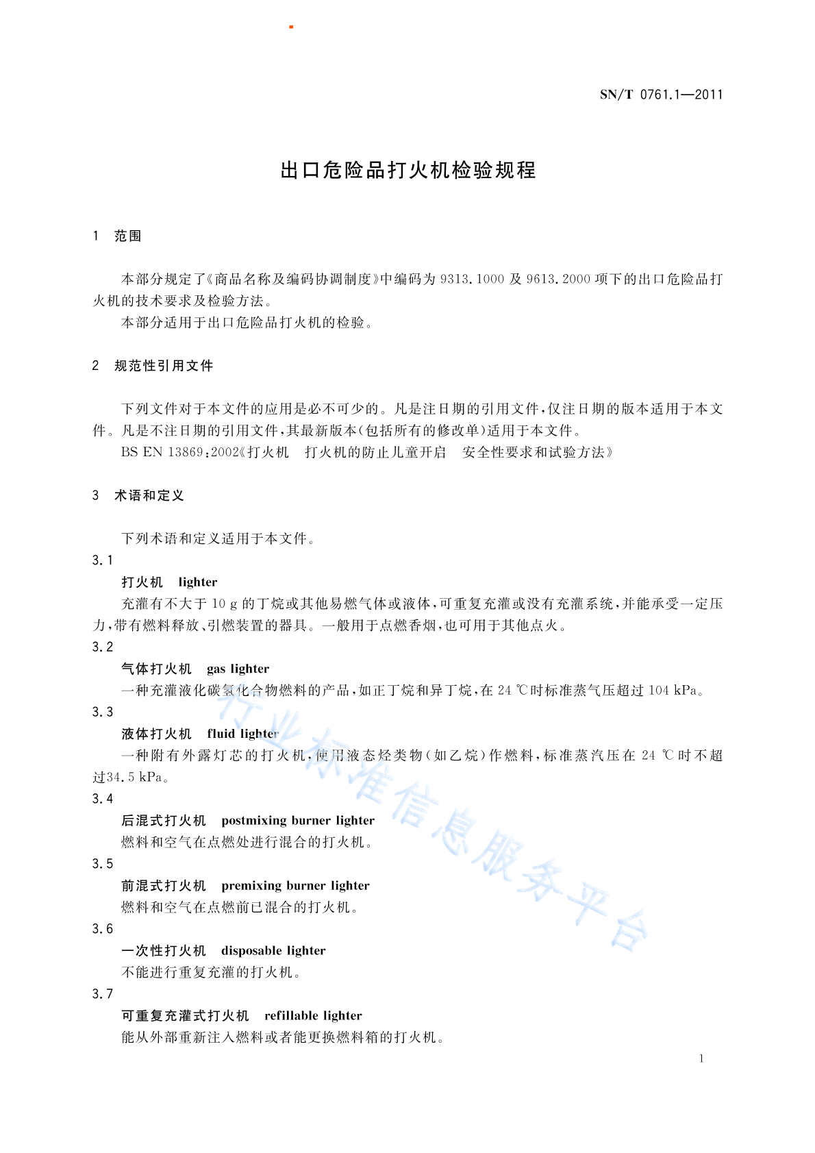 SN/T 0761.1-2011 进出口危险品打火机检验规程