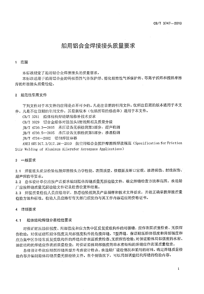 CB/T 3747-2013 船用铝合金焊接接头质量要求